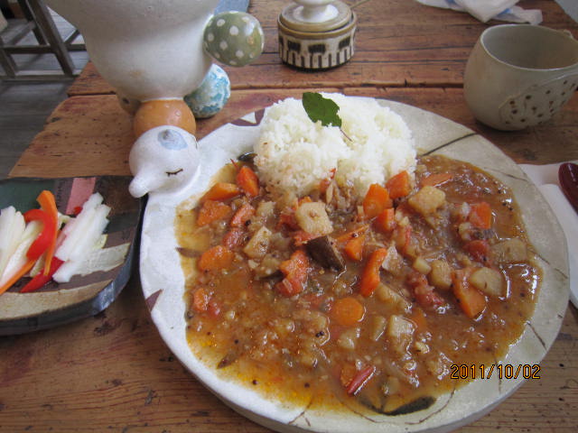 ランチをcamilleの作った野菜インドカレーとチャイのセットを食べた。
