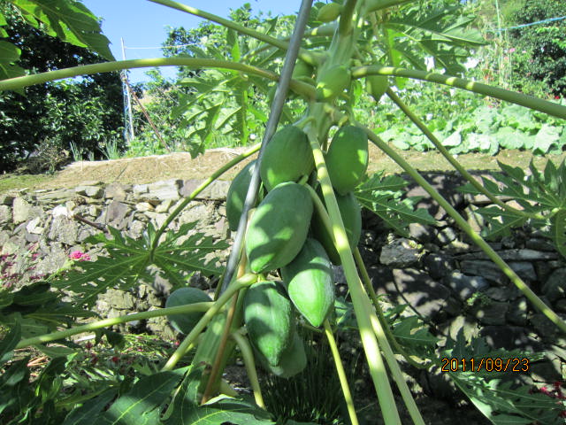 実家でパパイヤの木が成長していた!!(2メートル位もある。)