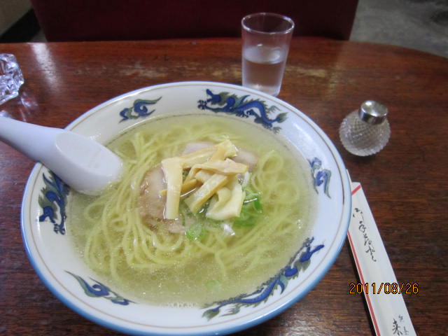この写真は、十字街付近にある「来々軒」の塩ラーメンだ。