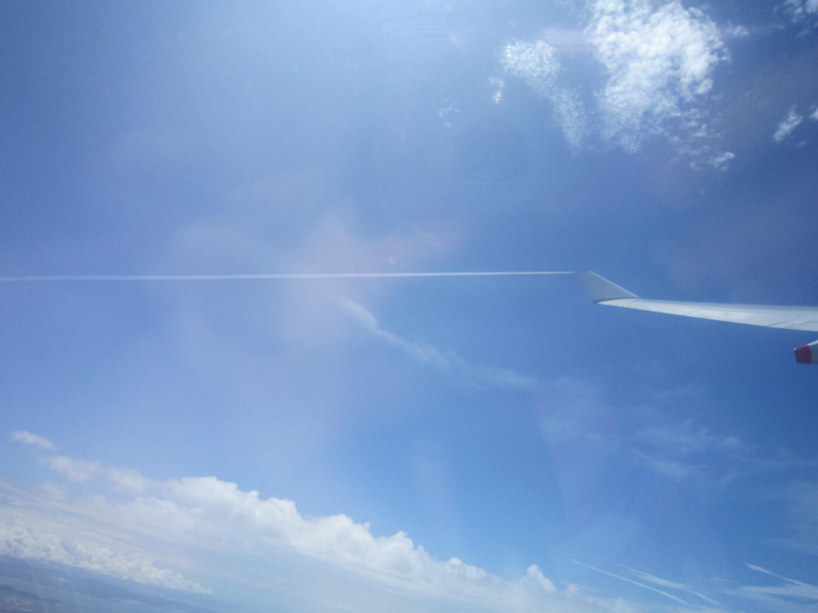 行きの飛行機では飛行機雲が出来ていた。
