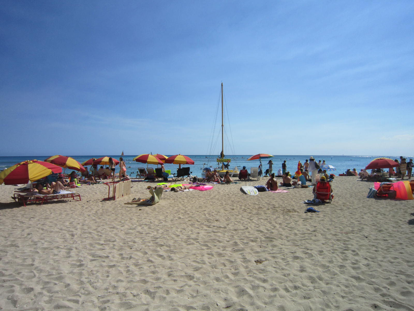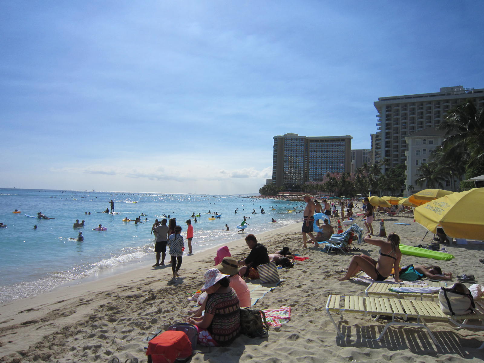 戻ってきたワイキキビーチは人で一杯 。