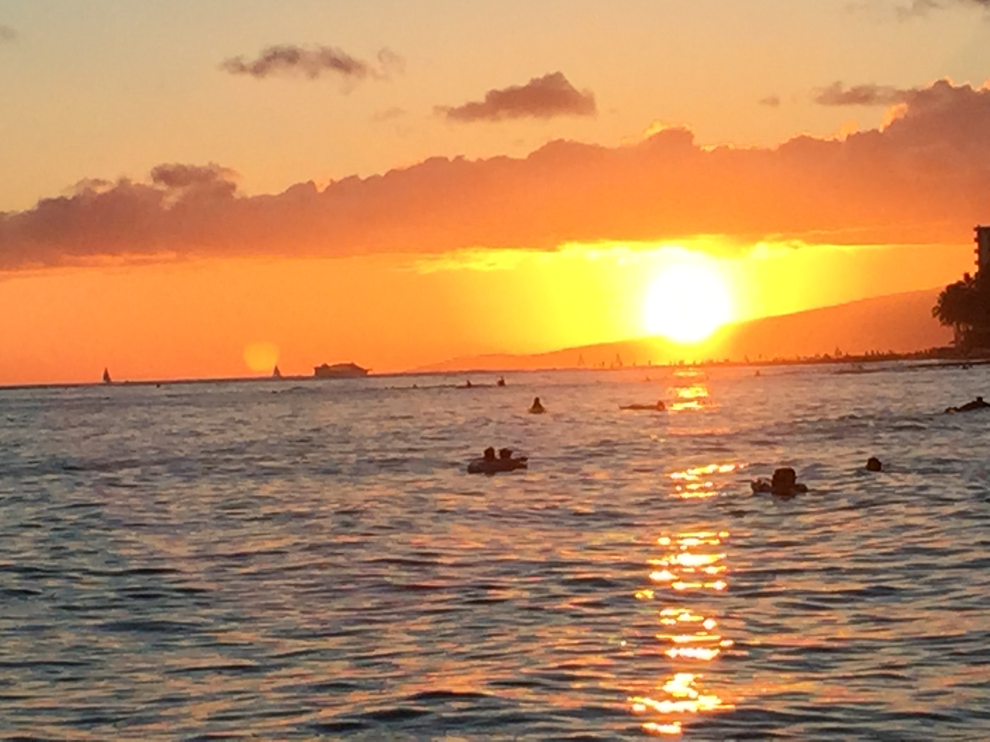 早朝からワイキキビーチで泳いで、