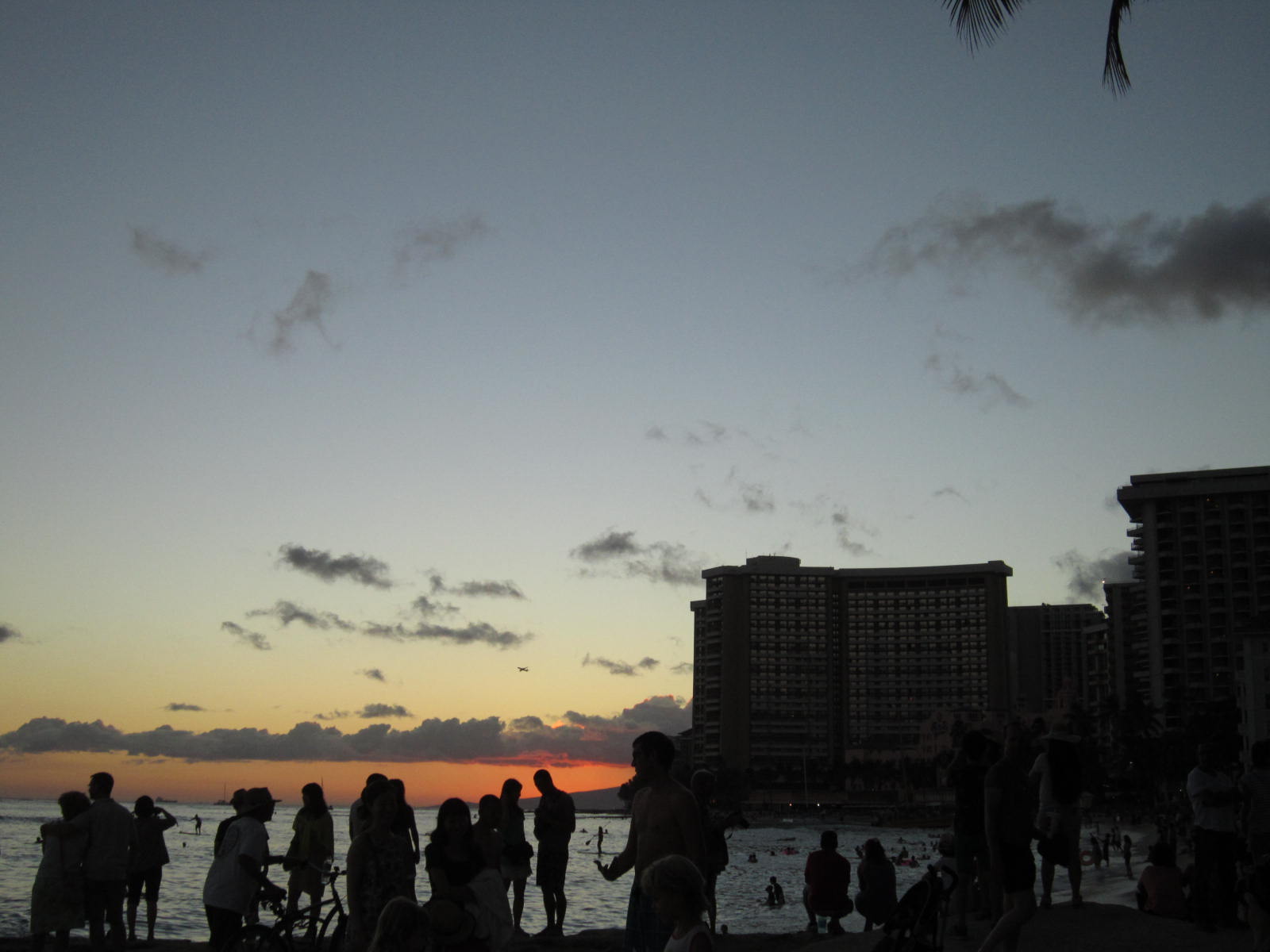 夕方、クヒオビーチの無料のフラと夕日を見に行った。